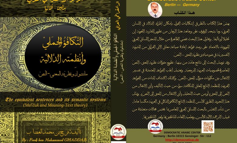 الطبعة الأولى “2021″كتاب: – التّكافؤ الجمليّ وأنظمته الدّلاليّة (ملتشوك ونظريّة المعنى-النّصّ)